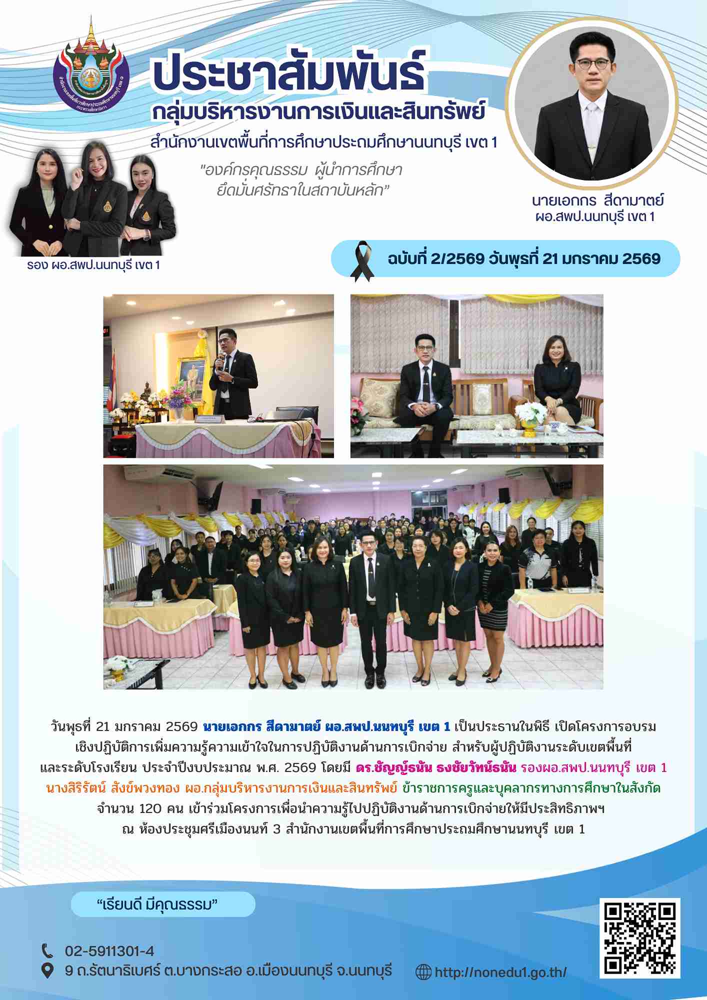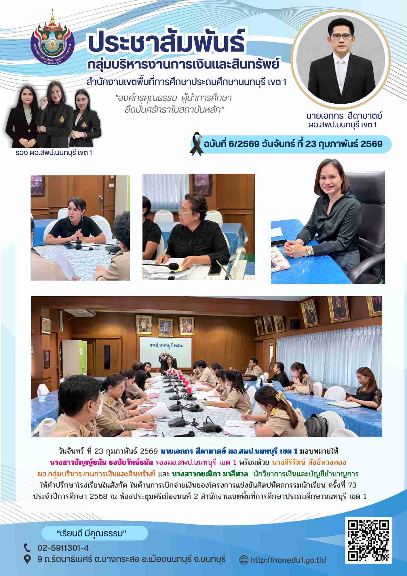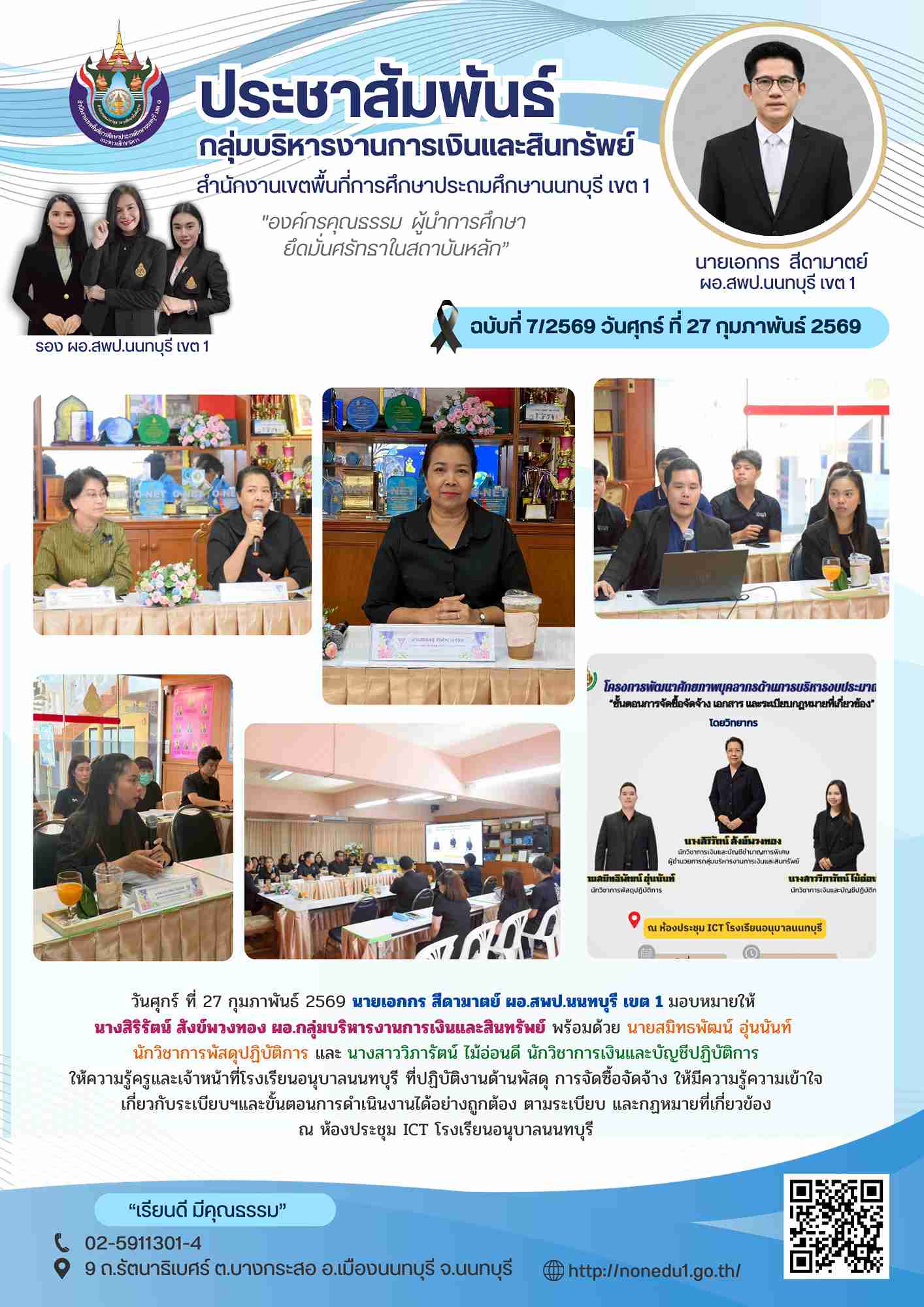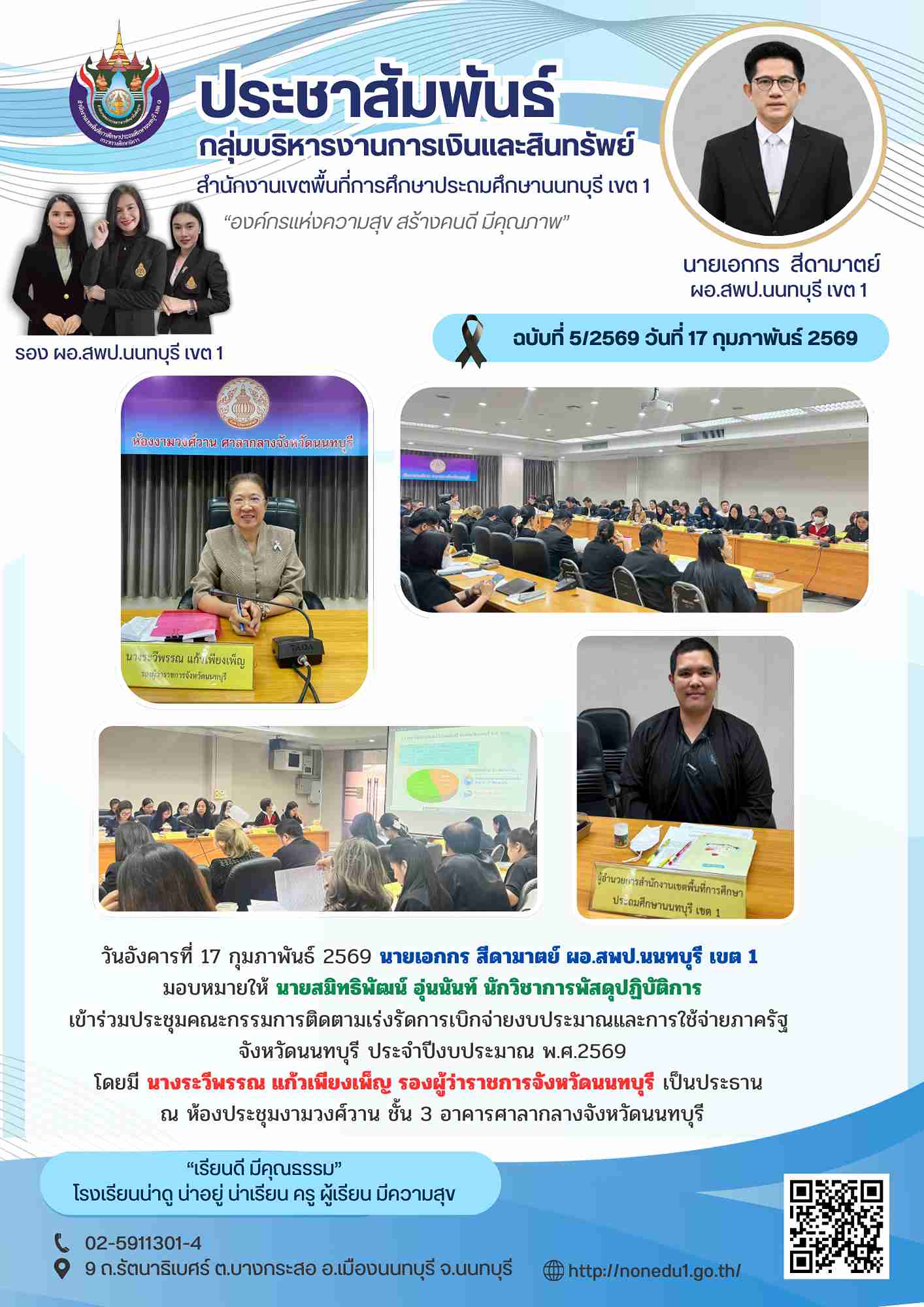เข้าร่วมประชุมคณะกรรมการติดตามเร่งรัดการเบิกจ่ายงบประมาณและการใช้จ่ายภาครัฐ จังหวัดนนทบุรี ประจำปีงบประมาณ พ.ศ.2569