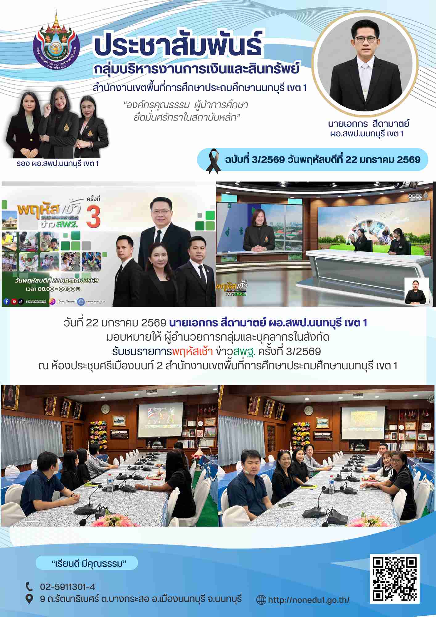 รับชมรายการพฤหัสเช้า ข่าวสพฐ. ครั้งที่ 3/2569